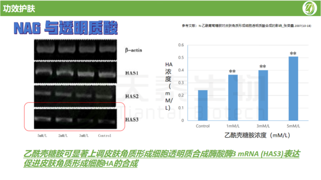 事實(shí)上,乙酰殼糖胺是透明質(zhì)酸的分子前體,它在肌膚內(nèi)轉(zhuǎn)化為透明質(zhì)酸,從而發(fā)揮其保濕和滋潤(rùn)的功效。